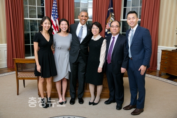 배내윤 교수와 가족은 지난 달 11월 10일, 미국 법무부와 백악관 인턴을 거쳐 2014년 백악관 정식 직원으로 채용되어 실장(디렉터)로 근무하고 있는 딸 예나양의 가족으로 초청을 받아 오바마 대통령을 만나 뜻깊은 시간을 보냈다고 밝혔다.
