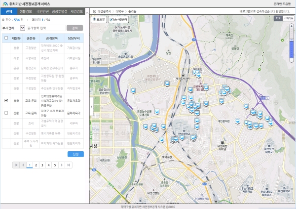 구는 지난 2015년 행정자치부에서 전국 지방자치단체를 대상으로 공모한 정부3.0 선도과제로 대전에서는 유일하게 선정돼 특별교부세 5000만원을 지원받아 2016년 12월 구축 완료했다.