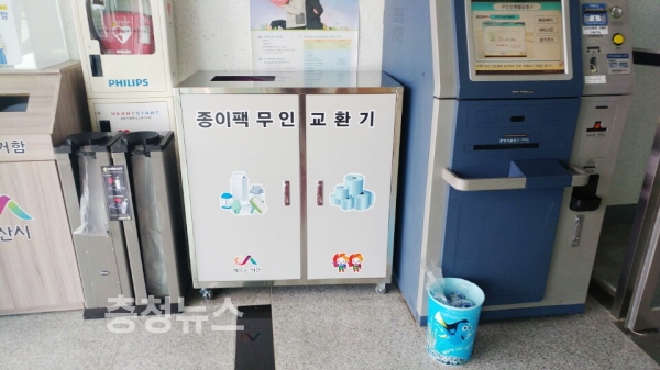 종이팩 무인교환기를 설치 종이팩과 화장지를 교환해주는 캠페인 추진