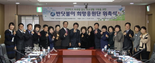 세종특별자치시교육청(교육감 최교진)이 10일 시교육청 상황실에서 ‘2017 반딧불이 희망응원단 위촉식’을 개최했다고 밝혔다.