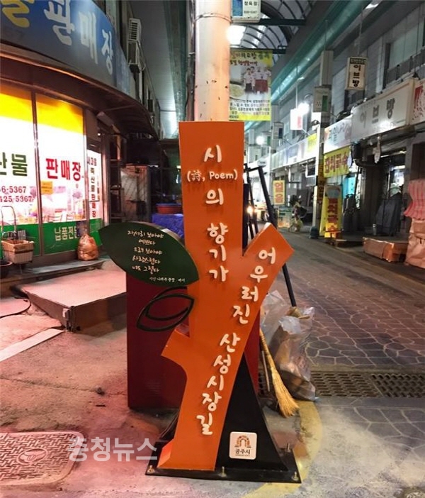 충남 공주 산성시장 내 문인들의 시를 활용한 감성문패가 내걸려 화제를 모으고 있다.