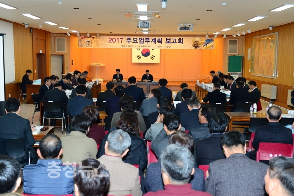 충남 홍성군은 2017년 정유년을 맞아 10일 군청회의실에서 김석환 군수와 하광학 부군수를 비롯한 각 실·과장, 직속기관·사업소장 및 군정자문위원 등이 참석한 가운데 2017년 주요업무계획 보고회를 개최했다.