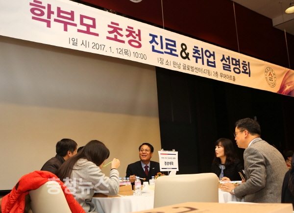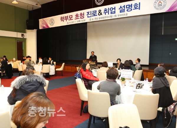 한남대(총장 이덕훈)는 12일 오전 10시부터 오후 1시까지 2017학년도 수시모집 합격생들의 학부모를 대상으로 ‘학부모 초청 진로&취업 설명회’를 개최했다.