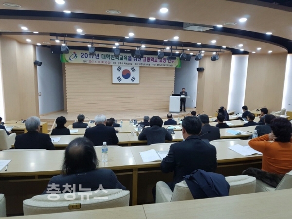 충남도교육청 김지철 교육감은 12일 공주대학교 국제회의실에서 도내 고등학교 교장을 대상으로 진학교육 역량 강화 연수와 2017년 대학진학교육 기본 계획에 대한 설명회를 갖고 ‘2017 대학진학교육’의 첫발을 힘차게 내딛었다.
