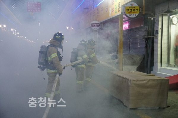 이번 훈련은 시장 내 점포를 철시한 후, 화재발생 상황에 따라 소방력 출동, 소방차량 진입 및 부서위치 선정, 자체소방시설을 활용한 화재진압, 인명구조·검색 등을 실제 상황과 동일하게 진행했다.