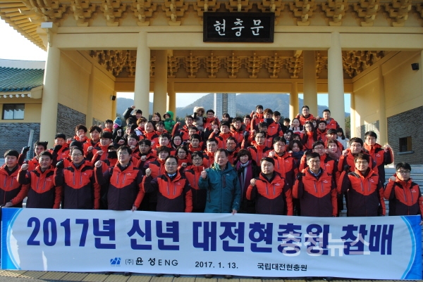 대전 유성소재 (주)윤성ENG 신윤섭 대표이사를 비롯한 임직원 100여명은 13일 오후 국립대전현충원을 방문하여 현충탑을 참배하고 천안함 장병들과 연평포격사건희생자 묘를 찾아 헌화하고 나라를 위해 희생하신 호국 영령들의 호국정신을 본받아 노사 모두가 국가와국민을 위한는 마음자세로 정유년 새해 최선을 다하자는 의미와 각오를 되새겼다.