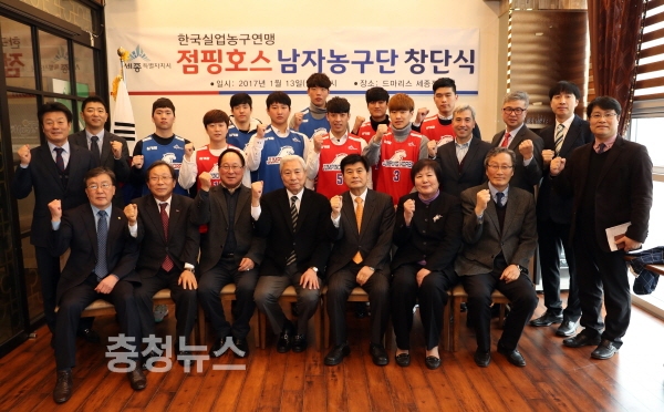 점핑호스(구단주 김언현) 남자실업농구단이 13일 12시 드마리스세종점에서 창단식을 가졌다.