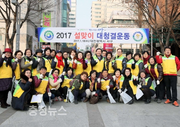 대전 서구 장종태구청장은 쾌적하고 깨끗한 설 명절을 맞이하고자 18일 갤러리아타임월드 주변에서 ‘설 맞이 대청결 운동’을 했다고 밝혔다.