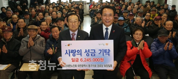 대전 동구 한현택구청장은 지난 17일, 18일 양일에 거쳐 (사)대한노인회 대전광역시 동구지회 강봉섭회장의 ‘천사의 손길 기탁식’을 가졌다.