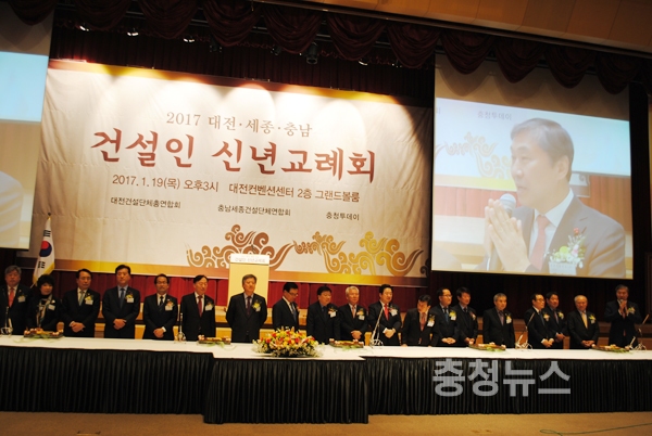 정유년 새해를 맞아 대전·세종·충남지역 건설업계의 발전을 기원하는 '2017년 대전·세종·충남 건설인 신년교례회'가 19일 대전컨벤션센터에서 열렸다.