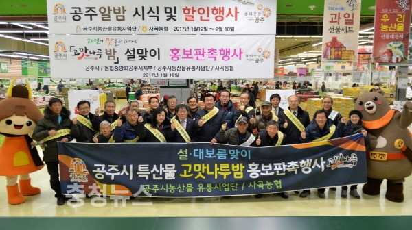 시는 공주시농산물유통사업단, 사곡농협과 협력해 오는 2월 10일까지 고맛나루 밤 200톤(10억원 상당)을 농협유통 양재점과 안성물류를 통해 판촉행사를 펼친다고 밝혔다.