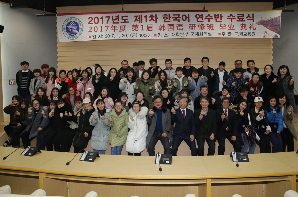 공주대학교 국제교육원(원장 박휴버트)이 20일 오전 국제회의실에서 김희수 총장 직무대리를 비롯해 한국어 강사와 한국어 연수생들이 참석한 가운데 2017년도 제1차 한국어 연수생 수료식을 개최했다.
