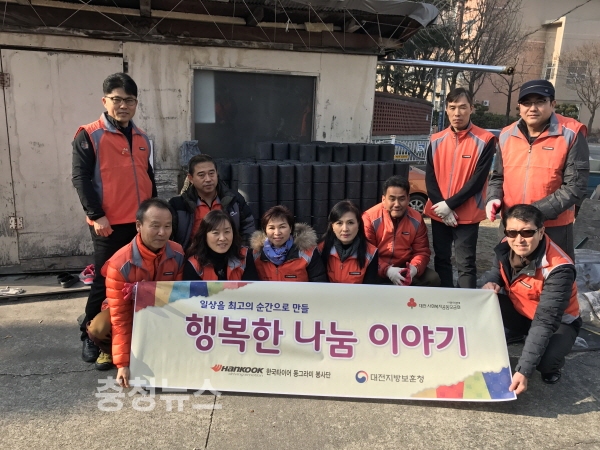 이날 행사는 대덕구 신탄진동에 거주하는 최홍순 국가유공자 등 3명에게 연탄 1,000장을 지원하였다. 한국타이어 대전공장의 봉사프로그램인 '행복한 나눔 이야기' 는 고령 국가유공자의 안락한 노후를 위해 밑반찬 지원, 어버이날 카네이션 달아드리기, 명절 위문 등 생활 밀착형으로 봉사에 참여 하고 있다.