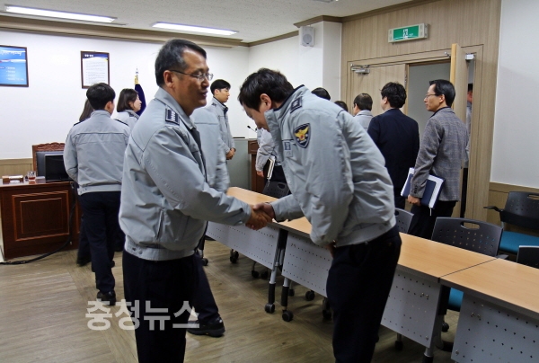 대전둔산경찰서 심은석서장은 1월 23일 2층 소회의실에서 서장 및 각 과장이 참석한 가운데 2017년 상반기 경위이하 정기인사 신고식을 개최했다.