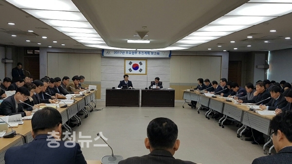충남 아산시 복기왕시장은 2017년도 시정 운영방향을 논의하기 위해 지난 23일과 24일 양일 간 시청 상황실에서 '2017년도 주요업무 추진계획 보고회' 를 열고 분야별 여건과 그에 따른 중점 추진과제를 토론했다.