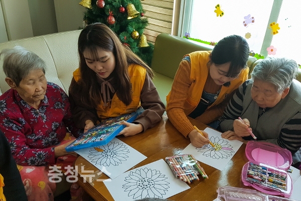 ‘원광은혜마을’ 요양 중 인 어르신들 그림 그리기 봉사활동 / 충청뉴스 최형순 기자