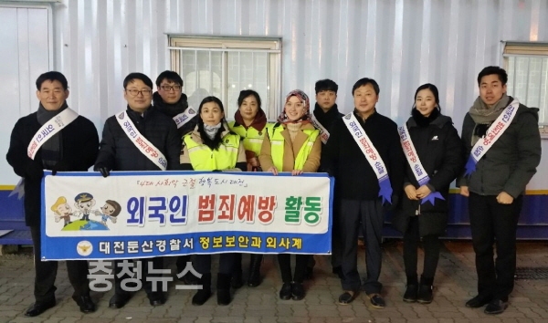 둔산서 외사계는 외국인치안봉사단, 지역경찰, 형사기동대, 둔산2동 자율방범대와 함께 취약시간대 외국인 밀집지역 등 가시적 예방적 효과를 위한 다목적 순찰과 함께 외국인대상 불심검문 및 검색을 실시하였다.