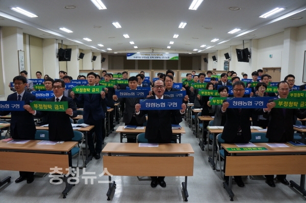 농협 충남지역본부 유찬형본부장은 2월 1일 지역본부 대회의실에서 윤리경영 실천 및 청탁금지법 준수 결의대회를 개최했다.