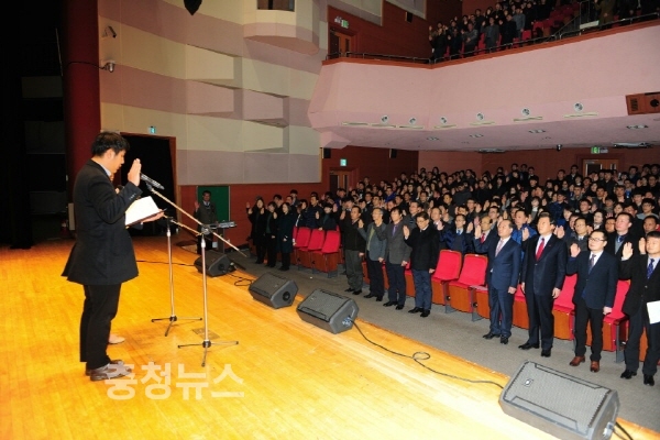 지난 1일 문예회관에서 ‘2017년 반부패 청렴실천 결의대회’가 개최돼 공직자 대표가 청렴 선언문을 낭독하고 있다