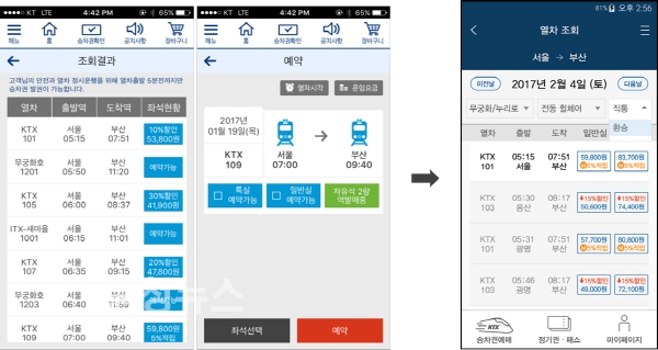 코레일톡+는 우선 사용자가 편리하게 앱을 사용할 수 있도록 화면 이동을 최소화하고, 직관적인 화면 구성으로 예매 단계를 크게 줄이는(10단계 → 7단계)등 열차 정보와 혜택을 한눈에 볼 수 있도록 사용자 경험(UX)에 주안점을 두고 전면 개편했다.