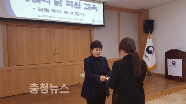 이날 보훈과장은 청탁금지법 상 금지되는 금품 등 수수에 대해 8개 사례를 중심으로 설명했고, 보훈지청장은 부정부패 방지 및 청렴도 향상을 위해 지난 1월 31일부터 진행한 청렴 이미지 공모에 당선된 직원에게 상품을 전달하며 격려했다.