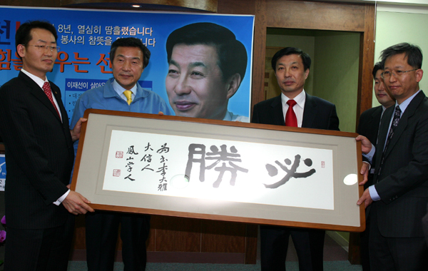 이재선 위원장은 “한나라당 대권주자 가운데 가장 먼저 ‘이재선 밖에 없다’며 손을 들어준 분”고마움을 표시하고 “4.25 보선에서 반드시 당선돼 12월 정권교체에 힘을 보태겠다”고 말했다.