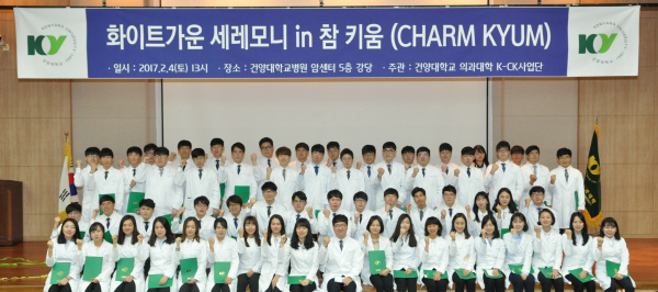 이날 행사에서는 안과의사 출신으로 아시아 최대규모 안과전문병원인 김안과병원을 설립한 김희수 건양대 총장을 포함해 최용우 의과대학장, 최원준 건양대병원장 등이 직접 학생들에게 화이트가운을 입혀주며 “희생정신과 사명감을 가진 의사로 성장해달라”고 당부했다.