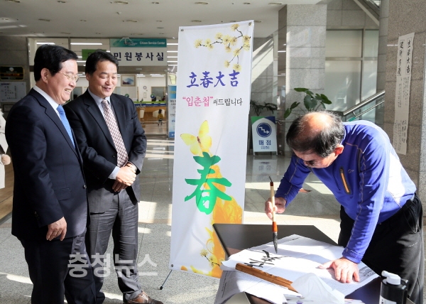 이에 착안해 개최한 이번 행사는 구청을 방문하는 주민에게 무료로 입춘과 관련된 사자성어를 현장에서 직접 써서 나눠주며, 사랑과 행복을 전파하는 다정(多情)행정 실천의 장이 됐다.