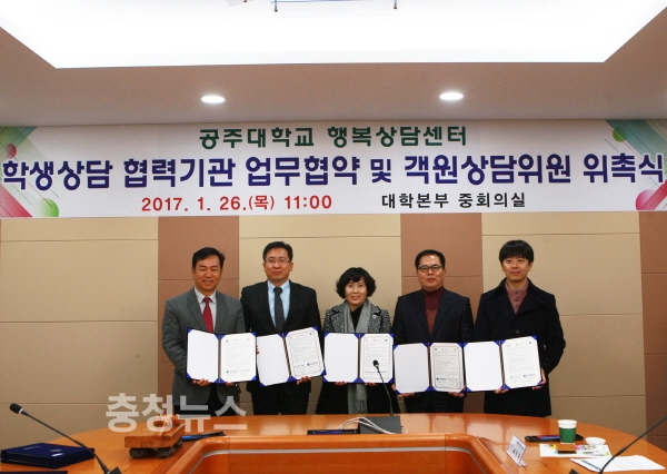 학생상담 협력기관과의 협약식과 객원상담위원의 위촉식의 행사로 시작된 이 작은 움직임이 공주대 뿐 아니라 지역과 협력기관과 상담전문가들에게도 뜻깊은 일로서 더 나아가 건강한 사회를 만들고 미래가치를 위해 함께 성장하는 계기가 되기를 소망한다”라고 강조했다.