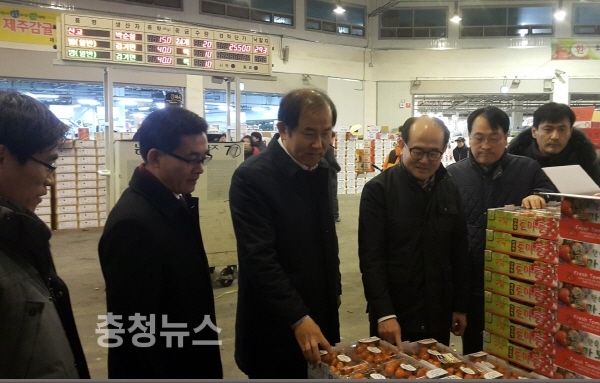 유찬형 농협충남지역본부장 농산물 경매현장에서 농산물 수급동향을 청취 / 충청뉴스 최형순 기자