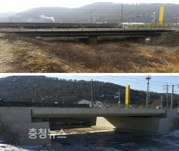 한국철도시설공단 충청본부(본부장 이동렬)는 경부선 철도 조천2교와 심곡천교를 콘크리트 소재로 개량하여 열차 운행선 인근의 소음과 진동을 줄이고 교량 처짐 현상을 최소화했다고 밝혔다.
