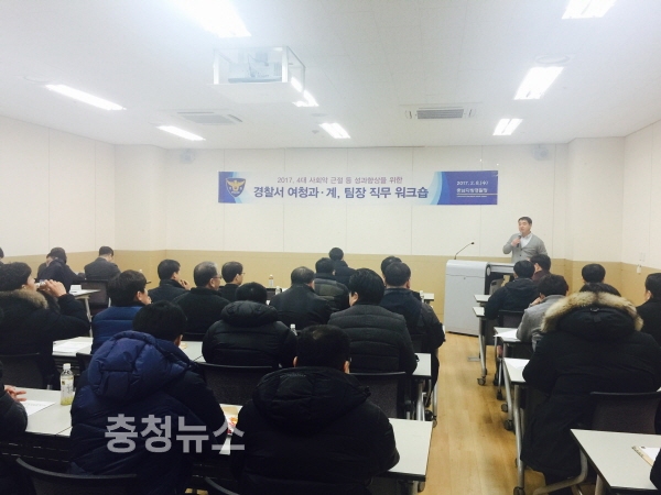 충남경찰청 김재원청장은 8일 고마센터(공주시 소재)에서 관내 15개 경찰서 여성청소년과․계․팀장들과 ‘17년 상반기 「4대 사회악 근절」성과 향상을 위한 직무 워크숍을 실시했다.