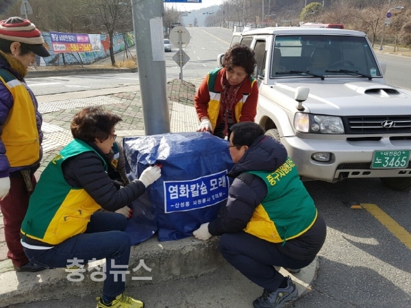 동 자원봉사협의회 회원 38명은 도로변에 어지럽게 놓여있는 제설용 모래주머니를 정리한 후, 자체 제작한 보호덮개를 이용해 도로변 미관향상을 위한 자원봉사활동을 전개했다.