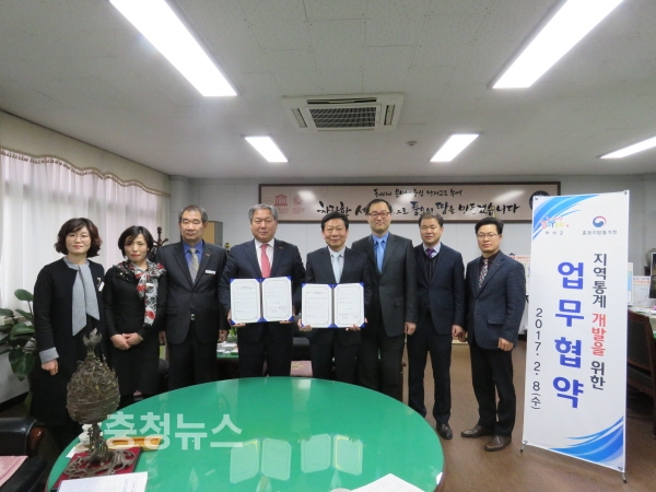 충청지방통계청(청장 진찬우)과 부여군(군수 이용우)은 2월 8일 부여군 군수실에서 지역통계 컨설팅 및 지역수요에 맞는 통계 개발 등 지역통계 발전을 위한 업무협약(MOU)을 체결하였다.
