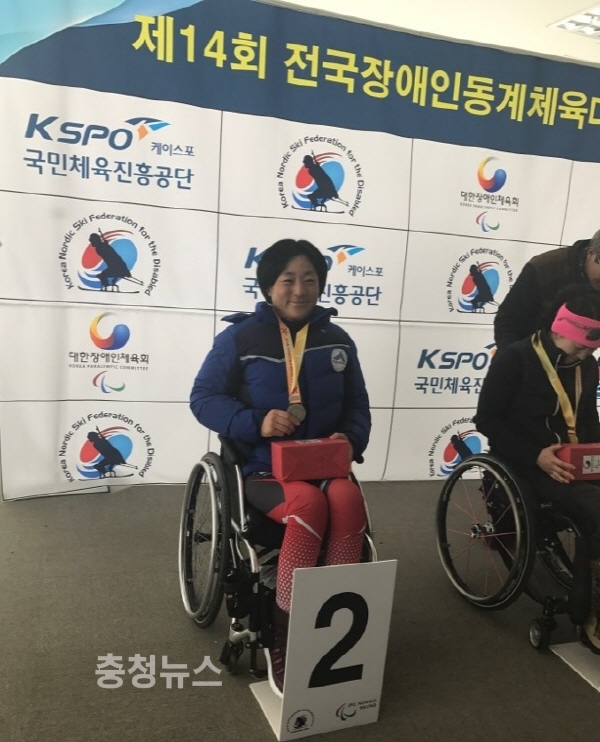 지난 7일 제14회 전국장애인동계체육대회 2일차 경기 크로스컨트리스키 여자부 좌식 2km(Free)에 출전하여 8분 29초 4를 기록하며 1위 서보라미(강원) 선수와 14초 5 차이로 아쉽게 2위를 기록하며 은메달을 획득했다. 또한 크로스컨트리스키 남자부 좌식 2km(Free)에 출전한 조항백 선수는 11분 59초 2를 기록으로 7위를 차지했다.