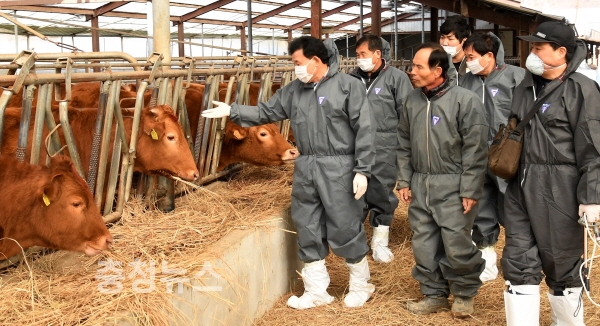 대전 중구 박용갑 청장은 9일 정생동 지역의 축산농가를 찾아 지역내 확산을 예방하기 위해 구제역 예방백신 접종과 차단방역 활동상황을 점검하고 예방활동을 강화하고자 방역담당자 및 공수의와 함께 방역활동을 전개했다.