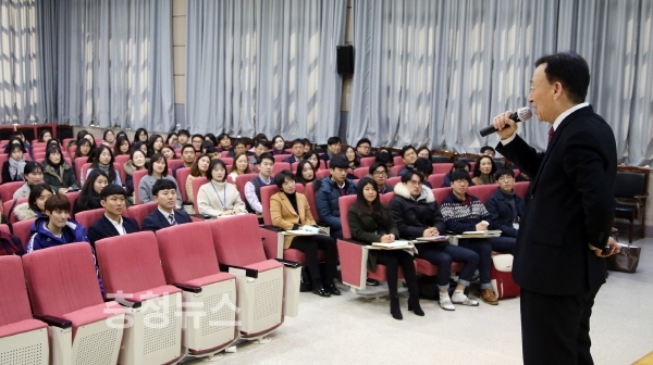 대전시 교육청 설동호 교육감이 9일 오전 대전교육연수원에서 초·중등 신규임용예정교사 및 교육전문직임용예정자 직무연수 대상자 총 225명을 대상으로 2017 대전교육의 방향과 신규임용자의 역할 기대를 주제로 특강을 실시했다.