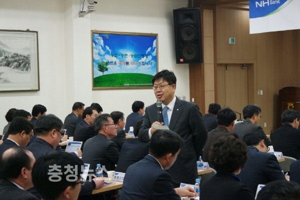NH농협은행 이경섭 은행장은 9일 충남영업본부 대회의실에서 충남·충북·대전·세종 본부장들을 비롯한 관내 사무소장 등 110여명의 임직원이 참석한 가운데 현장중심 소통 경영 간담회를 가졌다.