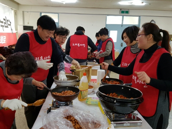이런 밑반찬은 자칫 추운 날씨로 영양불균형을 가져올 수 있는 장애인단체연합회, 손소리복지관, 사랑가득한 집, 하늘지역 아동센터, 등 이웃의 관심이 필요한 단체 소속의 110가정에게 전달했다.
