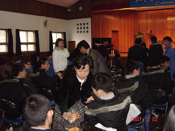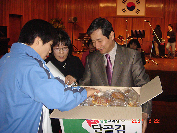 ▲ 이창기 총재와 원효순 교수 한국 청소년 동아리 대전.충남 연맹(이창기 총재)이 ‘청소년 동아리와 함께 하는 좋은 세상’ 이라는 캐치 프래이즈로 청소년기의 방황을 호되게 치러내고 있는 원촌 정보 산업 학교를 방문하여, 우리의 또 다른 자녀들에게 작은 관심과 사랑을 보이는 위문 공연을 펼치고, 가슴 따뜻한 다과의 시간도 마련 했다. ▲ 이정숙 사무처장