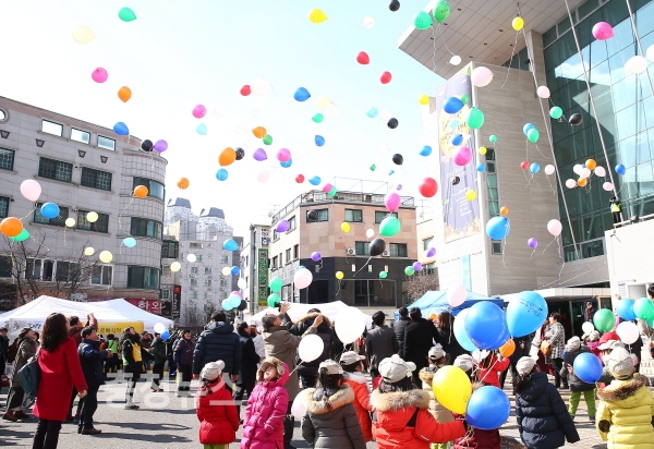 대전 유성구가 10일 유성문화원에서 ‘2017 유성 정월대보름제’를 개최한 가운데, 참석한 주민들이 소원을 담아 풍선을 날리고 있다