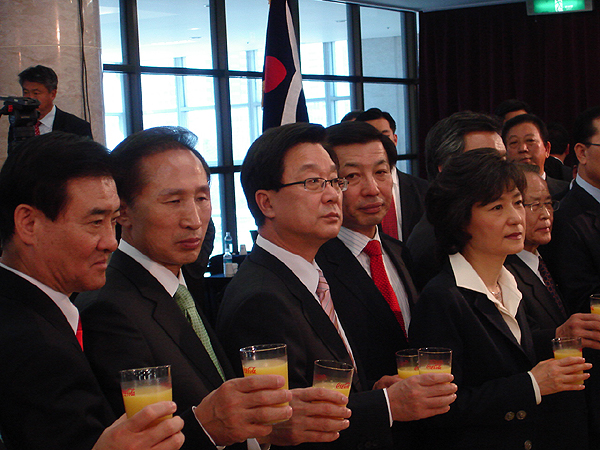 ▲ 박근혜.이명박.손학규 기자 회견장 국민 모두는 한나라가 한 마음이 돼 정권교체가 유일한 희망이라고 한다. 12.19일 돼 정권이 바뀌었으면 좋겠다는 생각으로 속이 상해도 참고 있는 것이다. 그래서 한나라 할 일이 많다. 우리가 단결할 때 지금보다 더 큰 지지를 줄 것으로 생각한다. 전국에 있는 우리당원 깊은 관심을 갖고 앞도적인 승리 해야만 한다. 저도 승리에 참여하겠다. ▲ 이명박 지지자들
