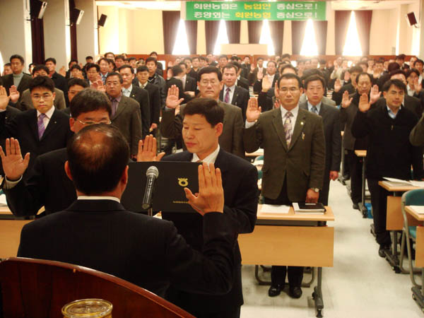 회의에서 농ㆍ축협 상무와 시군지부 팀장 등 2백여명은 지난 2004년 9월부터 지속적으로 추진하고 있는 새농촌새농협운동과 농촌사랑운동을 통해 금년에도 농업인과 국민들로부터 사랑받는 농협, 꼭 필요한 농협으로 거듭날 것을 다짐했다.