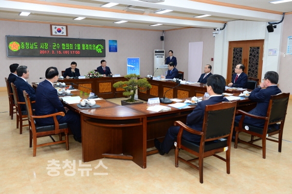 충청남도시장군수협의회(회장 박동철)는 15일 오후 홍성군청 대강당에서 월례회를 개최하고 당면한 현안에 대해 협의하는 시간을 가졌다.