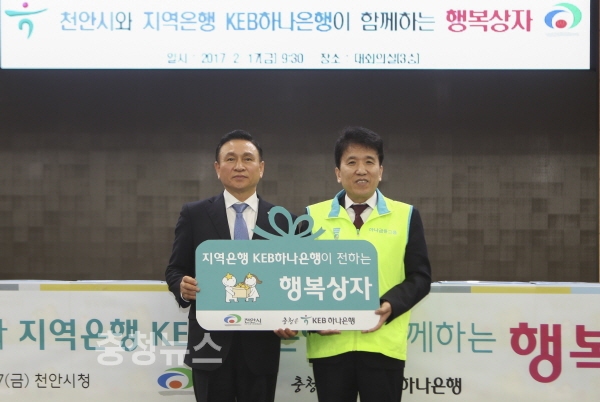 한편, KEB하나은행은 천안시금고 은행으로서 행복상자 이외에도 공익신탁, 천안시복지재단 후원, 외국인 근로자를 위한 일요영업 등을 통해 천안시민의 복지, 경제, 문화 발전에 앞장서고 있다.