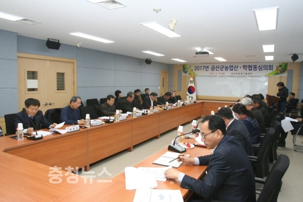 충남 금산군농업기술센터(소장 이갑수)에서 지난 17일 “2017년도 농업기술보급 시범사업” 대상자 선정을 위해 농업관련 기관단체장 등 20명의 심의위원이 참석한 가운데 농업산학협동심의회를 개최했다.