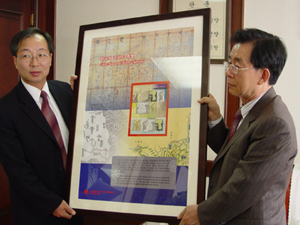 이계순 충청체신청장은 우리나라의 옛 지도를 소재로 한 '한국의 고지도 특별'우표를 28일에 천안독립기념관에 증정했다.