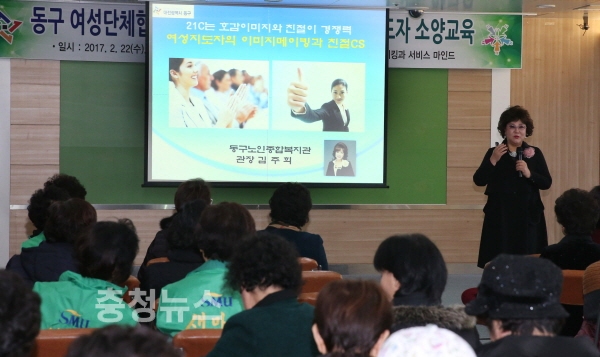 이날 총회는 동구청 직원 동호회 라인식스의 기타연주 공연을 시작으로 의식행사에 이어 김주희 동구노인종합복지관장의 여성리더의 이미지 메이킹과 서비스마인드라는 주제로 소양교육이 펼쳐졌으며, 이후 2016년 사업실적 및 결산보고, 2017년 사업설명 등이 진행됐다.