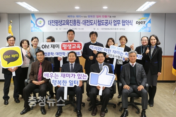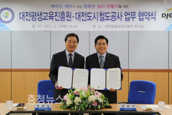 대전도시철도공사는 23일 대전평생교육진흥원과‘평생교육의 생활화와 행복한 일터 만들기’를 위한 업무협약을 체결했다.