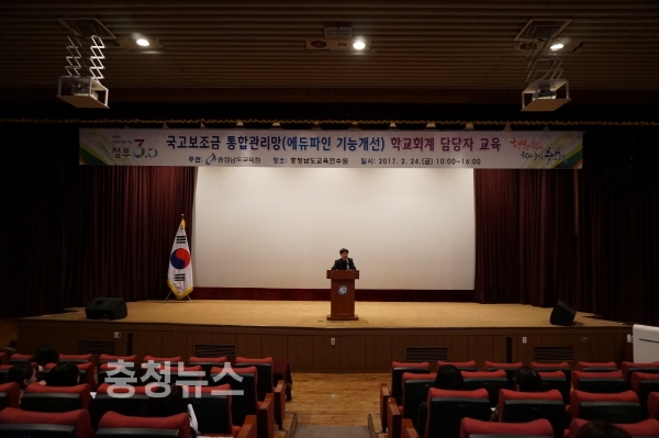 충남도교육청 김지철 교육감은 충남 도내 전체 유, 초, 중, 고, 특수학교를 대상으로 국고보조금 통합관리망 구축에 따른 에듀파인 사용자 교육을 충청남도교육연수원에서 24일 실시했다.